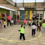 Durante la semana, los distintos niveles participaron en circuitos motrices, actividades de movimiento y juegos grupales, siempre promoviendo la importancia de moverse al menos 60 minutos al día, alimentarse de forma equilibrada e hidratarse constantemente. El entusiasmo fue creciendo día a día y culminó el viernes con una jornada llena de ritmo y color: bailes entretenidos y toda la comunidad vestida con ropa flúor marcaron un cierre alegre y participativo.